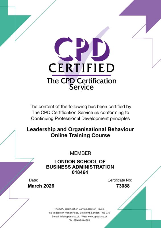The Leadership and Organisational Behaviour course is accredited by the CPD Certification Service, a globally recognised accreditation body dedicated to maintaining high standards in continuing professional development.