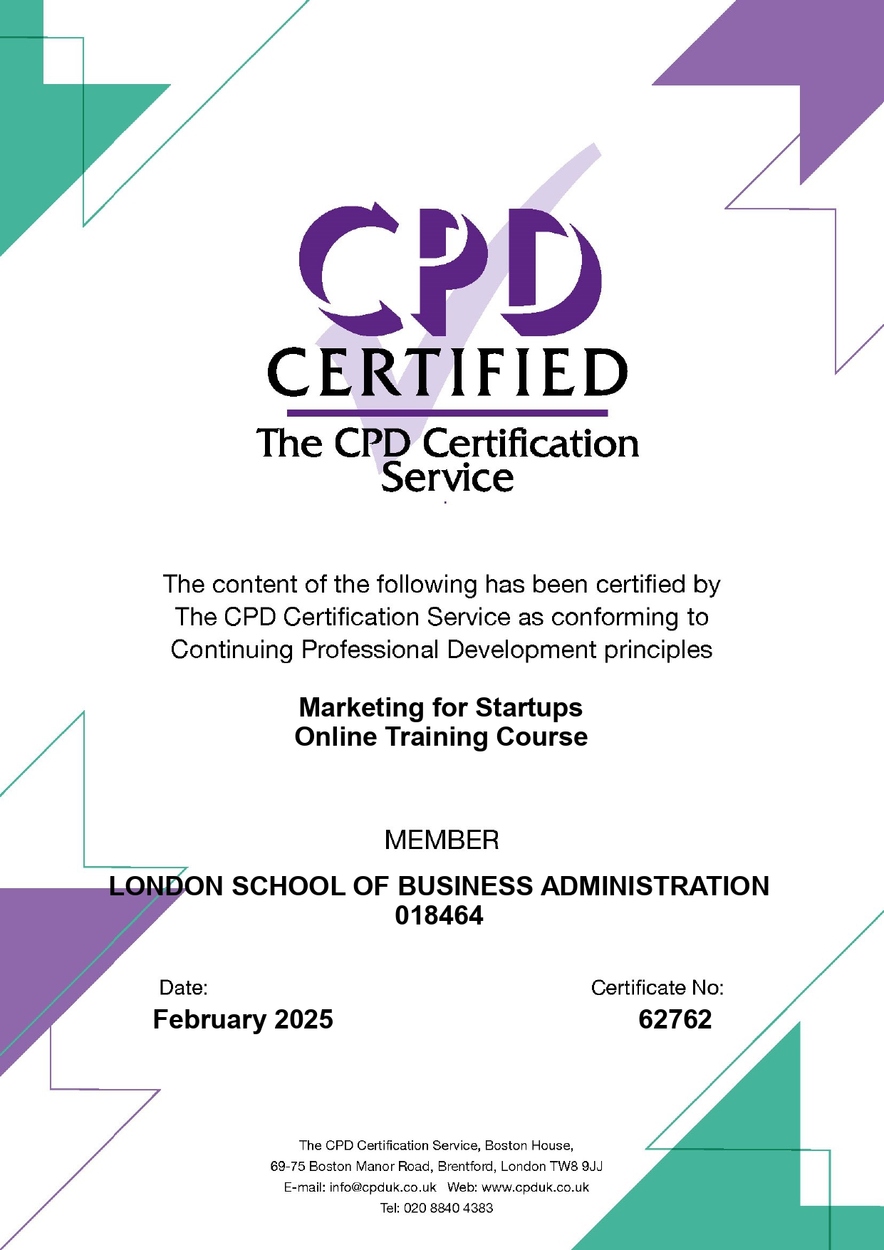 Upon successful completion, the certificate issued by the London School of Business Administration reflects CPD-accredited learning and can be used to evidence continuing professional development for career progression, professional portfolios, and employer requirements in the UK and internationally. (https://www.cpduk.co.uk/courses/london-school-of-business-administration-marketing-for-startups)