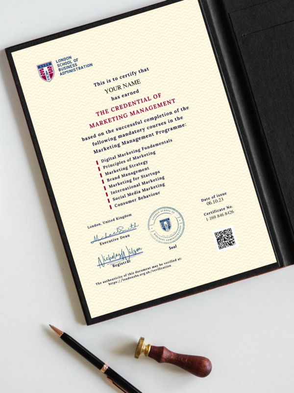 The Credential of Marketing Management is a comprehensive and forward-looking professional programme developed by the London School of Business Administration. It is designed to equip both aspiring and experienced professionals with advanced marketing knowledge, strategic capability, and practical skills required to compete effectively within today’s dynamic global marketplace.